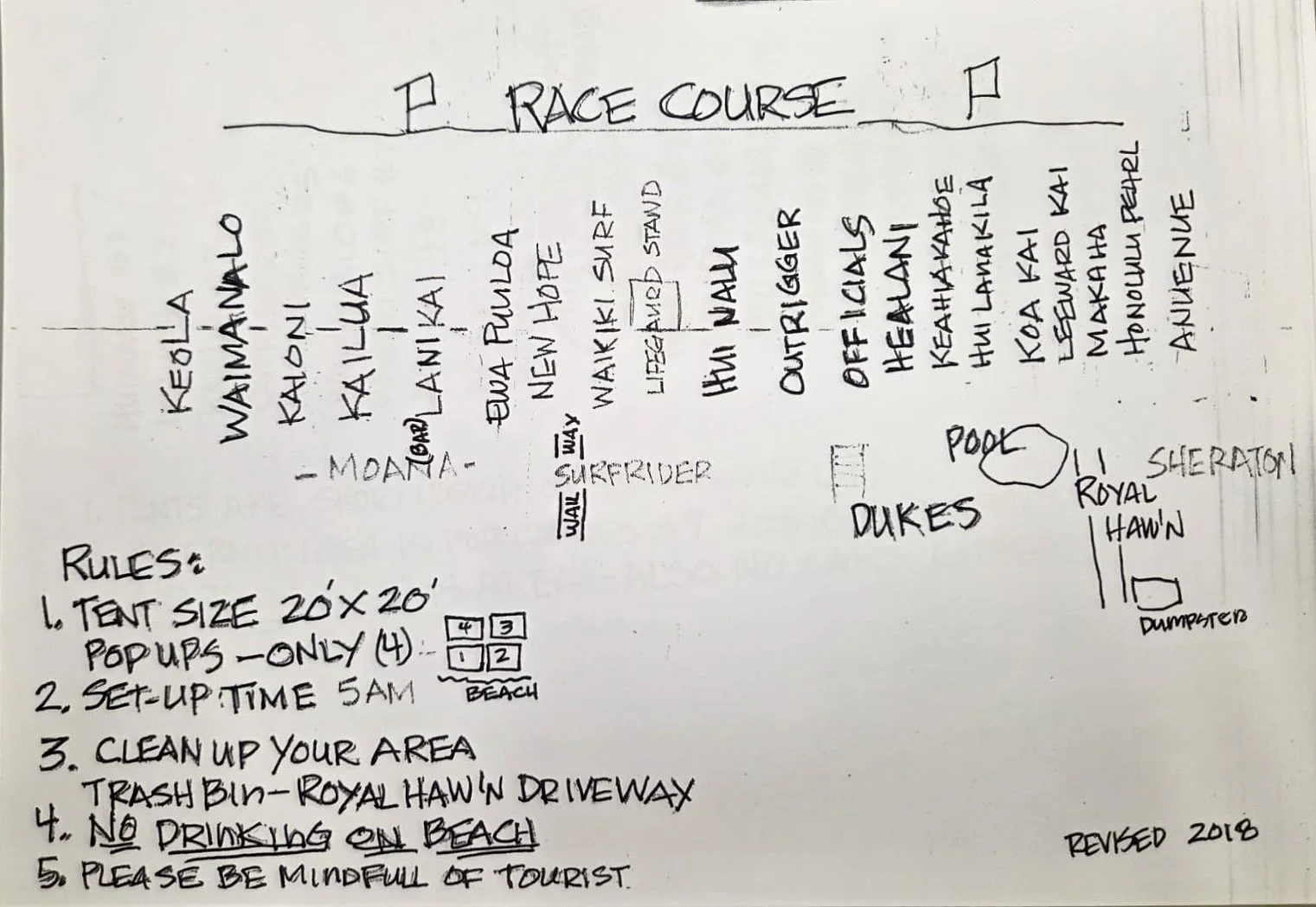 We’re going to be right in front of Duke’s Waikiki Restaurant. Look for the Hui Lanakila flag.